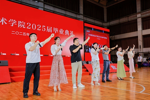 典礼前,一场由师生带来的饱含深情的毕业主题展演为全体毕业生送上了最真挚的祝福。歌曲《世界赠与我的》《再见》《不说再见》,传递着毕业生们对母校、师友深深的眷恋与对未来的美好期许;婉转空灵的戏腔演绎《探窗》,展现了中华优秀传统文化的独特魅力,为毕业季增添一抹别样韵味;由专业教师和辅导员倾情献唱的《希望你被这个世界爱着》,歌声中饱含师长们最朴素的祝愿,祝愿每一位学子都被世界温柔以待,前程温暖光明;《一路生花》动听的旋律配合服装设计展演,祝福毕业生们繁花似锦,绽放属于自己的精彩;师生及特邀嘉宾带来的武术表演《男儿当自强》以刚劲有力的武术招式、威武灵动的舞狮展演与神奇莫测的川剧变脸艺术交相辉映,激励毕业生勇立潮头,自强担当。精彩的表演使现场气氛拉满,掌声雷动。