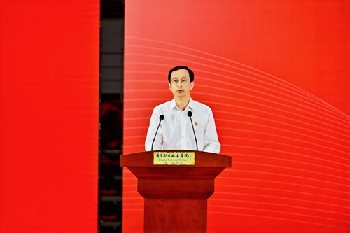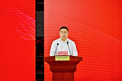 教师代表、国家课程思政教学名师、旅游学院教授赵迁远以“遇见”与“成长”为主题,深情回顾了与同学们在青职共同度过的三年时光。寄语毕业生在人生新旅程中,始终保持“乐学善思 知行合一”的精神和积极乐观的心态,努力扎根大地、向上追光,置身时代洪流,做坚定不移的实干家、行动派,在循环往复中沉淀成长,在技能报国中成就大我。
