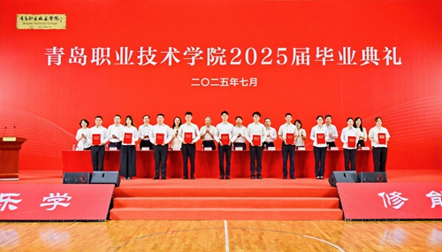 毕业典礼在庄严的国歌声中拉开帷幕。党委委员、副校长刘宏宣读《关于表彰2025届优秀毕业生和“圆梦青职-技能英才”的通报》,党委书记秦青松,党委副书记、校长邢广陆为荣获2025年“圆梦青职-技能英才”称号的毕业生颁发荣誉证书,表彰他们在专业技能领域的卓越表现。出席典礼的领导、嘉宾共同为校级优秀毕业生代表颁发了荣誉证书,为综合素质评价、学业成绩、文体活动方面的优秀毕业生代表颁发了毕业证书。