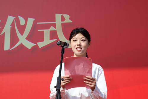 新生代表、海尔学院姚睿带领全体新生进行军训宣誓