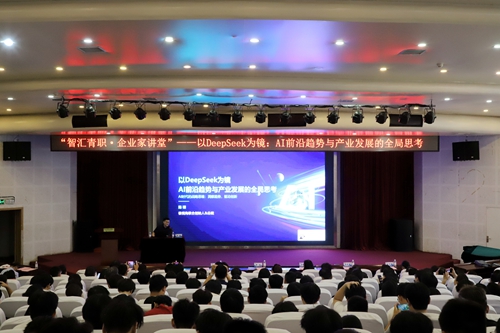 9月18日下午,米兰网页版2025年第三期“智汇青职·企业家讲堂”在米兰网页版艺术厅举办。山东极视角科技股份有限公司联合创始人兼总裁陈硕作“以DeepSeek为镜:AI前沿趋势与产业发展的全局思考”主题报告。米兰网页版党委书记秦青松主持报告会,党委副书记、校长邢广陆,党委班子成员出席活动。全体处级干部及师生代表共400余人聆听了报告。