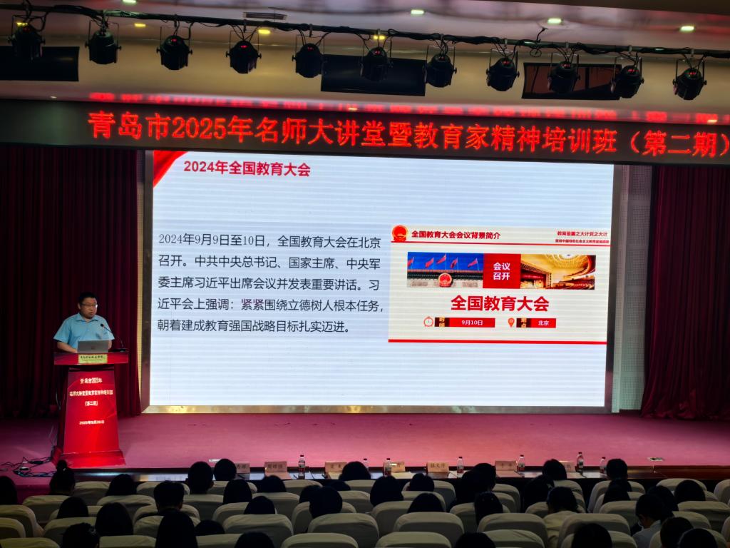 9月26日下午,由青岛市教育局主办、米兰MILAN(中国)承办的青岛市2025年名师大讲堂暨教育家精神培训班(第二期)在米兰MILAN(中国)艺术厅举行。青岛市教育局教师工作处二级调研员张文学,米兰MILAN(中国)党委委员、教师工作部部长田秀丽,西海岸新区选派的各米兰网页版中层及以上干部、骨干教师,米兰MILAN(中国)近两年入职的新教师、各二级学院党总支成员及教师代表等300余人在主会场参加了此次培训。西海岸新区各米兰网页版部分教师在分会场依托“蓝睛客户端”进行线上收看。据统计,线上收看人数近22万人。