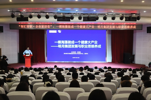 在互动交流环节,师生代表围绕“高职毕业生第一份工作选择”“职业院校专业、课程设置与企业需求对接”等问题积极提问。张国防结合自身发展经历及明月海藻的战略布局与人才培养经验,逐一进行了耐心、细致的解答,既分析了海洋生物领域产业发展的前景,也为职业教育的育人方向提供了行业视角,现场掌声不断。