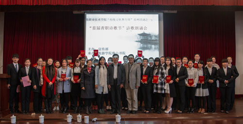 “首届青职诗歌节”诗歌朗诵会是学院“中华优秀传统文化教育周”系列活动之一,由学院宣传部主办、旅游学院珠山书院承办。诗歌朗诵会在全院范围内对朗诵者进行了广泛招募,共有80余名诗歌爱好者积极报名,经过严格选拔,20名同学脱颖而出。朗诵会的朗诵主题与风格多样化,涵盖了“理想”“青春”“爱情”“爱国”等多个主题,既有《面朝大海,春暖花开》《青春》《当你老了》《致橡树》等温婉抒情诗,也有《念奴娇•赤壁怀古》《祖国万岁》等气势磅礴的诗歌,既有古典名篇,也有大家耳熟能详的现代优秀作品;朗诵会自创诗歌的展示环节,由学生创作并朗诵的一首抒情诗《那年我们高考》,得到在场同学的一致共鸣;朗诵会的教师展示环节,旅游学院的孔艳华老师朗诵了匈牙利诗人裴多菲的经典诗歌《我愿是激流》,孙娈老师朗诵了自创的爱情诗《如果爱》,老师们用优美的语音、精湛的技巧、真实的情感,让在场的每一名听众都感受到诗歌的魅力,将诗歌朗诵会现场气氛推向了高潮。诗歌朗诵结束后,刘甲珉和旅游学院院长齐洪利向所有朗诵者颁发了证书。