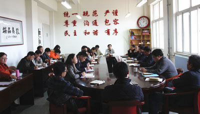 刘甲珉要求各党总支要全面打造学院校园文化及党建品牌,努力在思想政治教育工作、教师师德建设、世界文明园建设、校内文明活动组织、志愿服务工作等方面作出成绩,打出品牌。