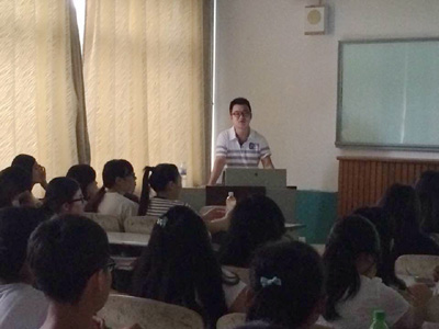 此次讲座邀请2014届毕业生、现就读于韩国全北大学心理学专业的刘震铎同学为大家作以“赴韩留学那些事儿”为主题的讲座。讲座内容丰富多彩、生动有趣,刘震铎以PPT的形式向大家讲述了自己在韩国留学多年的经历。学生们认真聆听,犹如自己亲身经历了一场留学生活。
