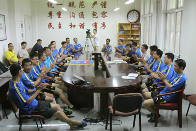 7月15日下午,米兰网页版教职工足球协会在国际公寓会议室举行成立仪式。党委副书记刘甲珉出席仪式,院工会副主席孙钢及协会创会成员28人参加了仪式。