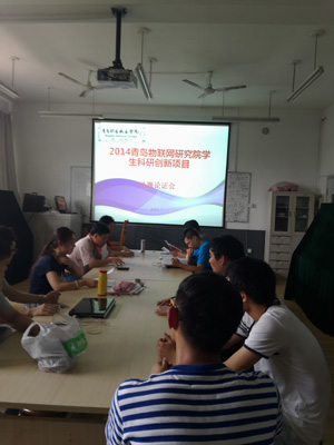7月16日下午,2014第二批“青岛物联网应用技术研究院学生科研创新计划项目征集活动”课题结题论证会在学院比邻楼物联网综合实训室举行。论证会对物联网应用技术专业2013级1班刘鸿明同学的《基于ibeancon的室内定位系统的设计与制作》等5个项目进行了结题论证。作为专家组成员,物联网应用技术研究院院长范德辉、副院长于志云、副教授胡希勇等5位专业老师参与了论证会。