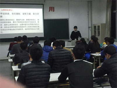 12月10日晚,在第二个国家公祭日即将到来之际,在海尔学院团总支号召下,2015级各团支部在致用楼举行“勿忘国耻,圆梦中华”主题团会。