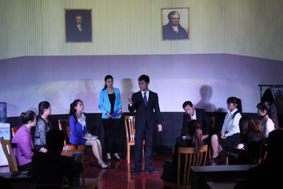 旅游学院副院长王媛媛介绍了荣誉课程创意写作课《书写自我》的教学宗旨、教学方式和教学实施情况。来自旅游学院2014级各个专业的10位荣誉课程创意写作课的学生演出结业作品——话剧《十个公民》。该剧在荣誉课程张薇老师的指导下由学生自己根据美国经典影片《十二怒汉》改编,学生自己担任演员。剧组成员由教师团队组成:张薇(总策划)、武文(顾问)、孔艳华(导演)、张晶晶(舞台设计)、崔岩(音响效果)、刘慧(场记)、朱海燕(化妆)。话剧《十个公民》叙述了一个发生在2015年夏秋之际的合议庭上的故事。探讨的主题是对他人的生命负责就是对自己负责,启发学生们独立思考、善于判断、勇敢承担的思维能力。演出获得圆满成功,观众反响强烈。