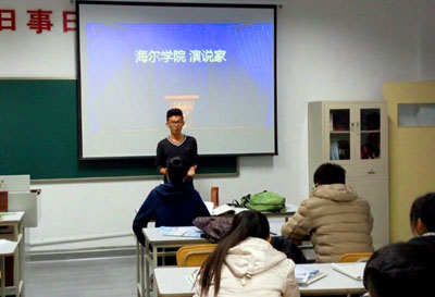针对海尔学院学生写作水平和口语表达能力较弱的问题,学生会还在晚自习中特别设计了“海尔演说家”环节,同学们提前准备原创的演讲内容,自拟演讲主题,每晚20:00-20:30在各班分组进行演讲,活动开展以来,同学们分享了“亲情与友情”、“成长之路”、“大学梦想”、“历史上的人物”等主题内容,演讲和写作水平不断提高,培养了学生们的自信心。