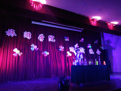11月19日晚,旅游学院2015年迎新晚会在艺术厅举行。旅游学院党政负责人、专业部主任、新生辅导员及各二级学院团总支副书记应邀观看了晚会。