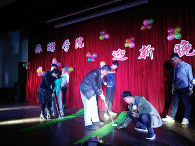 整个晚会气氛欢快,2007级校友的“花式调酒”和“高尔夫推杆大比拼”小游戏,使台上台下互动热烈,师生欢聚一堂,为晚会掀起多个高潮。