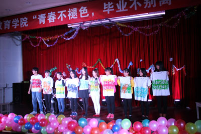11月5日晚,教育学院在艺术厅举办以“青春不散场,毕业不离别”为主题的文艺演出。 晚会在动感的开场舞中拉开帷幕,节目内容涵盖了歌舞、小品、相声、乐队表演、B-BOX等多种形式。轻柔甜美的歌声、独具特色的现代舞、幽默搞笑的相声段子和贴近生活的小品表演为观众呈现了一场视听盛宴。整场晚会洋溢着青春的激情,参加演出的同学和现场观众进行了良好的互动,掀起一个又一个高潮。 此次演出展现了教育学院学子的风采,同时也表达了对即将走上实习岗位的2013级同学的美好祝愿。