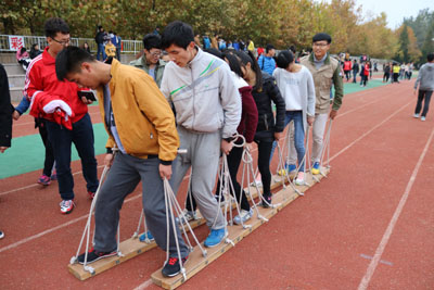 为积极响应我院2015年体育节号召,激发广大同学们参加活动、锻炼身体的热情,知行书院于11月12日在学院运动场举办2015级新生趣味运动会。 本届趣味运动会一共包括9个项目:两人三足、巨人脚步、仙人指路、赶猪跑、不倒森林、足球九宫格、速度跳绳、百米飞人、平板支撑。同学们在各个项目中表现积极,现场气氛活跃。最终,应用化工2015级6班、应用化工2015级2班、生物制药2015级2班分获团体总分前三名。