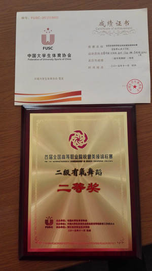 10月30日至11月2日,首届全国高等职业院校健美操锦标赛在杭州举行,此次比赛由中国大学生体育协会主办、职业教育米兰网页版体育工作委员会协办、浙江经济职业技术学院承办,我院公共教学部牟晓峰、陈焕娣两名老师带领校健美操队的8名同学参加了比赛,并获得了有氧舞蹈二级比赛二等奖的成绩。