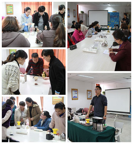 为丰富女教职工的文化生活,了解咖啡知识,增进相互间的交流,11月4日下午,院工会邀请旅游学院姜龙生老师在图书馆二楼西厅举行了一场别开生面的手泡咖啡讲座,30余位老师参加了活动。 姜龙生老师对咖啡的基本种类、咖啡豆的烘焙与选择、咖啡的调制方法、水温及手泡咖啡的泡制过程进行了详细的讲解。他先后演示了几种手泡咖啡的手法。在姜龙生老师的指导下,参加讲座的老师们纷纷动手,发挥创意,调制出各具风味的咖啡,品尝着醇香浓郁的咖啡,全场充满了笑声与咖啡的醇香。