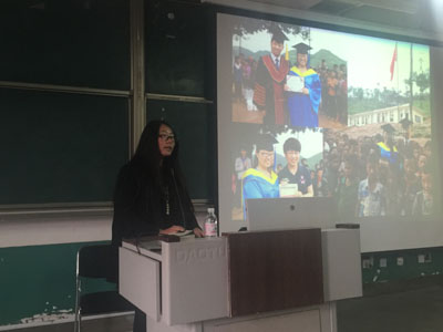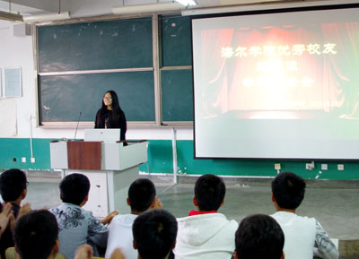 10月15日下午,学院“校友讲堂”第三讲在修能楼举行,海尔学院2014届毕业生王思佳回校为同学们作精彩报告。