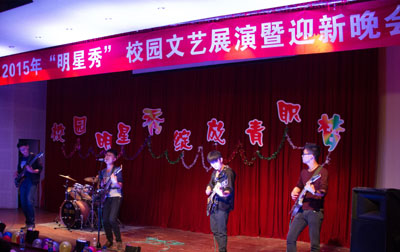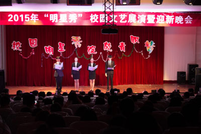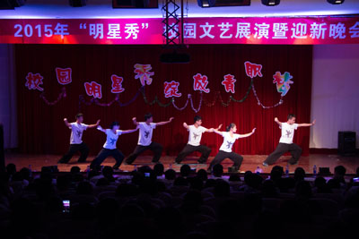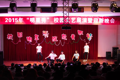 10月19日晚,由院团委主办、院学生会承办的,我院2015“明星秀”校园文艺展演暨迎新晚会在艺术厅举行。各二级学院学生会骨干与2015级新生共同观看了晚会。 晚会在蒸馏水乐队《梦一样自由》、《向阳花》的歌声中拉开帷幕,由院学生会文艺部和社团精心排练的14个节目一一上演。晚会涵盖了小乐队、小合唱、朗诵、武术、舞蹈等各类表演,其中不乏2015级新生的精彩演绎。由大学生艺术团带来的开场舞《fire》以动感的舞姿瞬间点燃整个晚会现场。由院学生会广播站四位新生成员自己创作并朗诵的《因你而精彩》,让同学们展开了对大学美好生活的畅想。歌曲独唱《回家》和男生合唱《我们的歌》,以优美动听的歌声让同学们感受到了家的温暖。由2015级新生带来的舞蹈《歌舞青春》集民族舞、拉丁舞、爵士舞等舞种为一体,舞出了我院学子对青春的不同诠释。由学院太极武术协会表演的武术《舞动太极》和2015级新生表演的武术《精忠报国》,一静一动,刚柔并济,将中华武术的精魂表现的淋漓尽致,晚会现场的气氛也因此推向了高潮。此外,晚会节目中融入的具有异域风情的印度舞以及韩国时尚舞K-kop等舞蹈,也使晚会现场高潮迭起,掌声不断。最后,踏着青春的脚步,晚会在男声独唱《母亲》的深情演唱中完满落幕。整场晚会精彩纷呈,现场座无虚席,场面之热闹可见一斑。 此次晚会以“校园明星秀,绽放青职梦”为主题,旨在积极引导学生在学生组织和社团活动中不断学习,自我提高,努力成为一名“技高品端”的高素质人才。晚会以丰富多彩的文艺展演展示了我院学子积极向上的精神风貌和多姿多彩的校园文化,为2015级新生尽快融入大学、适应大学学习和生活起到了积极的作用。