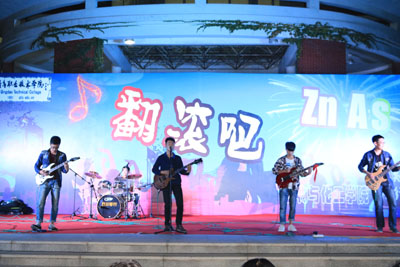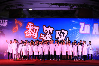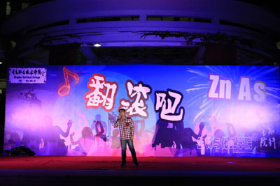 为推动“校园三声”建设,充分展示2015级新生的个人才艺和能力,增进师生之间的交流沟通,10月13日晚,由知行书院社团联合会和学生会共同举办的2015级迎新生晚会“翻滚吧,Zn As”在回音广场拉开帷幕。宣传部、海尔学院、软外学院、旅游学院、生化学院相关负责人以及2014级、2015级学生共600余人观看了本场晚会。 此次迎新晚会的主题为“翻滚吧,Zn As”,利用“Zn(锌)、As(砷)”的谐音比拟“新生”,彰显生化学院学习化学元素的专业特点。晚会在我院蒸馏水乐队激情澎湃的摇滚乐中开场,现场的热情一下子被调动起来。活力四射的街舞表演不仅展示出新生的多才多艺,也跳出了青年人的激情与活力。吉他弹唱《老男孩》、歌曲合唱《红白玫瑰》等展示了同学们迷人的声线和极富魅力的旋律,小品《手机的故事》以幽默、新颖的方式讲述当下人们沉迷、依赖手机的现象,倡导大家积极生活、感受真实生活中的真善美和真性情,拒绝做低头族。小品《碰瓷》对当下社会中的不道德行为进行形象生动演绎,呼吁积极传播正能量,为提高全民道德意识积极奉献自己的一份力量。节目中穿插进行了2015级新生辅导员王双蕊、纪杰与学生的互动游戏,纪杰老师还奉上了精彩的舞蹈表演。班级大合唱《我相信》和《一生有你》展示了新生班级团结、阳光、奋进的精神面貌。众多精彩的节目获得台下师生观众的阵阵掌声。