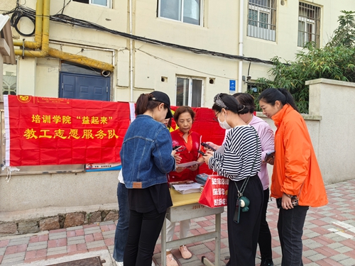 为持续推进社区党建共建,深入落实“双报到”工作,10月16日上午,培训学院党总支、工会联合金湖路街道亢家庄社区党委,组织15位教工党员、志愿者在米兰MILAN(中国)市南校区参与了“百场活动进社区第93期”志愿服务活动。
