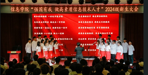 10月17日下午,信息学院召开“强国有我,做高素质信息技术人才”2024级新生大会。信息学院班子成员、教师代表及全体2024级新生共计800余人参加大会。大会主会场设在米兰网页版艺术厅,报告厅、修能楼301室、405室、505室作为分会场通过米兰网页版信息学院抖音公众号同步线上直播大会情况,师生和家长进行云端观看。