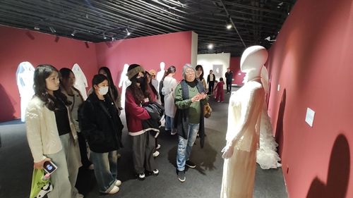 活动中,师生们进行了小人台“娃衣”立体裁剪的专业知识学习,不仅提升了学生们的专业技能,也加深了对服装设计的理解。随后,师生们参观了服装面料展馆,对时装面料的流行趋势进行了深入的学习和了解。在衣军的带领下,师生们参观了20世纪初至今的欧洲礼服收藏实物,衣军现场讲解了礼服的设计与工艺发展。通过这一环节,学生们不仅开阔了设计视野,还对服装设计的历史与文化有了更深刻的认识。
