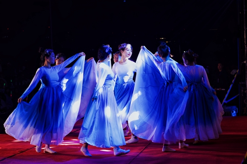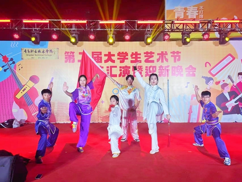 夜幕低垂,青年广场光影交错。由拳术、九节鞭、双鞭、传统太极剑、单刀、单枪、舞旗等组成的武术串烧《武定乾坤》首先亮相,一招一式尽显功底,张弛有度尽显风范,学生们稳健潇洒的招式和饱满的精神状态赢得了现场观众的阵阵喝彩。随着一声亮喝,身着传统戏曲华服的学子款款登台,带来《大登殿》经典选段,将戏曲的韵味和文化的厚重感展现得淋漓尽致;“十二花神”身着汉服进行走秀表演,衣袂飘飘,古韵悠然;萨克斯独奏《走过咖啡屋》悠扬的旋律在夜空中飘荡,悦耳放松,增添浪漫氛围;伴奏合唱《青花瓷》、器乐合奏《起风了》随着筝弦拨动,声乐相合,旋律流淌唯美动听;民族舞《梦的航迹》舞姿灵动飘逸,将中国舞的温婉风情与青春的活力交织;现代街舞《chkchkboom》动感十足,独唱《花海》、流行歌曲串烧等涵盖说唱、民谣等流行多种音乐风格,将青春活力传递给在场观众,学生们纷纷挥舞手中荧光棒,跟随节拍舞动、放歌。随着一曲高昂的男女声二重唱《灯火里的中国》,在激昂的乐声中,浓烈的爱国主义情怀在学子们心中激荡,晚会在高潮中完美落幕。