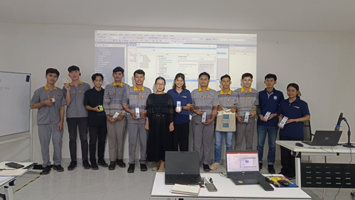 此次对柬埔寨Cart轮胎有限公司的培训从10月24日开始,至10月26日结束,内容涵盖了信息技术素养与数字化转型、PLC基本指令和扩展模块应用、生成式大模型技术在办公和生产中的应用、PLC通讯指令调测、工业传感器选型与数据采集、PLC控制电机定位等多个模块。培训团成员结合在赛轮(越南)有限公司的授课经验,基于柬埔寨工厂的实际情况,重新调整了课程深度,以确保柬埔寨学员们能够全面、系统地掌握相关知识与技能。