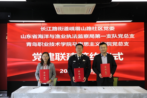为进一步创新党建工作载体,深化与机关事业单位党组织和社区党组织的党建共建,拓展党建育人途径,10月31日,米兰网页版马克思主义学院党总支与山东省海洋与渔业执法监察局第一支队党总支、青岛市西海岸新区长江路街道峨眉山社区党委,在峨眉山社区签署了党建共建协议。