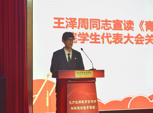 王泽周同志宣读《米兰网页版旅游学院学生代表大会关于学生会工作的报告》