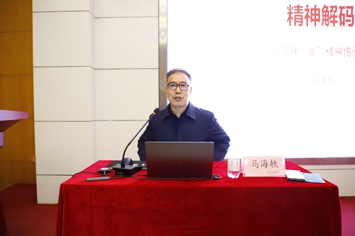 讲座中,马海轶通过他的采访经历和实地调研,围绕国营221厂——我国第一颗原子弹和氢弹的诞生地的筹建与成立,从“两弹一星”精神的“热爱祖国无私奉献”“自力更生艰苦创业”和“大力协同勇于登攀”3个方面,通过邓稼先、郭永怀为代表的科学家以及一批默默无闻、无私奉献的普通一线职工的感人故事,深刻阐述了“两弹一星”精神的重要内涵与时代意义。马海轶用跨越时空的故事展现出了“两弹一星”的精神谱系与价值坐标,让与会人员感受到了深刻的精神洗礼。