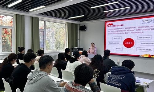 旅游学院团总支书记刘祥瑞介绍旅游学院志愿服务体系