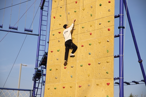 实践环节中,学生们在教官的带领下,参与了基础练习、海军旗语学习、激光模拟打靶、高空攀岩、军事拓展训练、团队凝聚力提升等国防主题实战体验。活动内容丰富且目标明确,全面锻炼了学生的意志品质、团队协作能力和军事素养,激发了青年学生为祖国的繁荣富强贡献力量的决心。