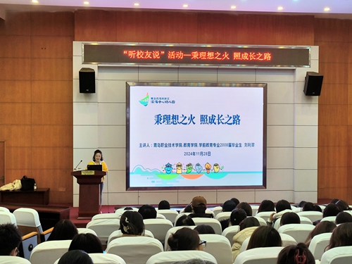 11月28日下午,教育学院在米兰网页版报告厅举办2024年秋季“青职大讲堂”暨“听校友说”活动,邀请青岛西海岸新区滨海中心幼儿园保教主任、教育学院2005级学前教育专业学生刘利翠为学院师生作报告。