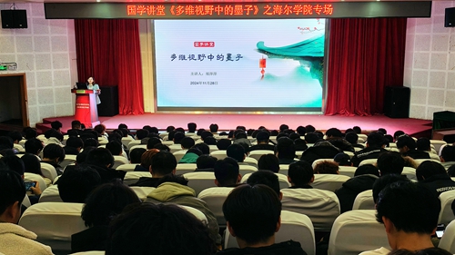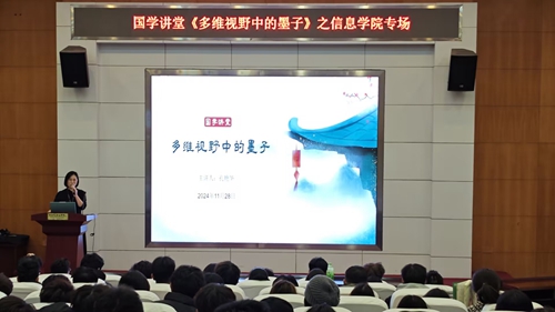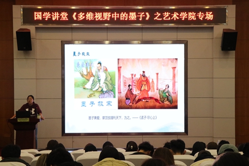 此次讲座主题为“多维视野中的墨子”。主讲教师从我国发射的世界首颗量子科学实验卫星“墨子号”导入,分别从作为科学家的墨子、思想家的墨子、致力和平的雄辩家、救人于危难的游侠、尚简节用的苦行僧等多维视角,用义理与故事相结合,具体分析诠释了墨子的思想主张、墨子的人格及墨子对中国文化乃至世界文化的贡献。讲座还就墨家思想传承的历史境遇及墨子思想在当代生活中的价值意义进行了深入探讨:如精益求精的工匠精神、兼爱天下的互利思想、崇尚和平的外交政策、勤俭节约的环保意识等,将经典思想与现实生活进行紧密结合,对学生学好经典、用好经典具有积极的实践意义。