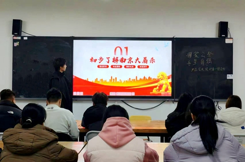 在主题团日活动中,各团支部以庄重而严肃的态度开启了对国家公祭日的深度阐释,团支书通过视频、图片等资料带领大家回顾了南京大屠杀那段沉痛屈辱的历史,讲解了设立国家公祭日的意义,以及我国人民在维护世界和平方面作出的巨大贡献。随后的默哀环节,全体学生起立,低头默哀三分钟,在对历史悲痛的缅怀与对战争暴行的愤慨之中,深刻意识到国家公祭日背后承载的厚重历史意义与民族情感,也更加坚定了吾辈自强、捍卫和平的决心与信念。