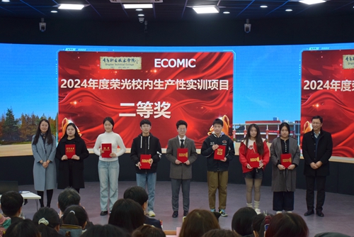 随后,大会对在此次生产性实训项目中表现突出、成绩优异的学生进行了表彰,并颁发了获奖证书和奖品。其中,商务日语专业2023级学生衣政滔、张本源、徐习凯荣获山东省业务运营赛区优胜奖。作为业绩奖励,荣光公司今年将继续出资、选派2名优秀学生赴日本总公司及札幌地区进行7天游学活动,让学生有机会亲身体验日本企业的运营模式与工作环境,深度感受日本社会文化。