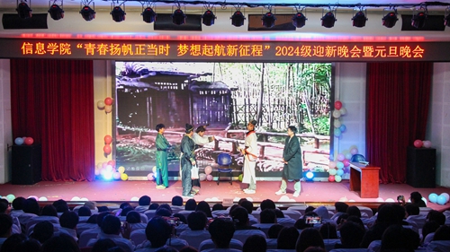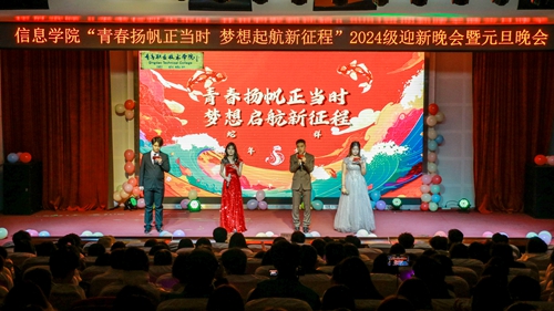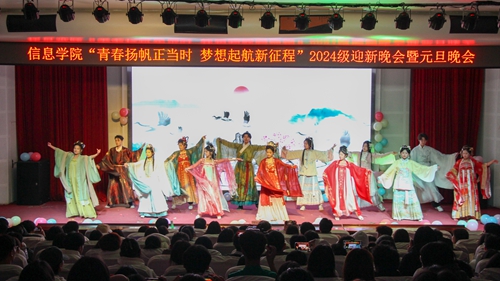 12月15日晚,信息学院在艺术厅举行“青春扬帆正当时 梦想启航新征程”2024级迎新晚会暨元旦晚会。信息学院党总支书记李明杰、学工办主任唐宝坤、国际留学生代表以及2024级新生代表共同参加活动。晚会通过信息学院官方抖音号同步直播。