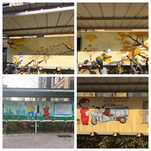 活动现场,在孙云杰等专业教师的带领下,志愿者们以社区墙面、车棚、电箱为画布,运用艺术技巧和丰富的创造力,将绿色环保和安全用电等理念转化为一幅幅生动的墙绘作品。这些作品不仅助力社区环境提“质”增“颜”,更与社区居民的日常生活相结合,将环保、用电安全等理念以直观、易懂的方式融入其中,让居民在日常生活中随时随地受到正能量的熏陶。志愿者们的专业素养和热情投入赢得了社区居民的广泛赞誉。志愿者们通过艺术创作,为社区的可持续发展贡献了自己的力量,成为了社区文化建设的积极参与者和践行者,展现了青职学子积极向上、勇于担当、热情奉献的精神风貌。