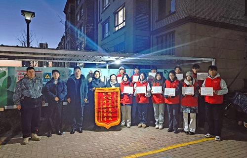 社区为学院赠送锦旗并为志愿者颁发荣誉证书