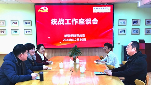 12月30日上午,培训学院党总支在市南校区实训楼104会议室召开统战工作座谈会。培训学院党总支书记赵悦,统战委员、青年委员和培训学院无党派、民主党派教职工参加会议。
