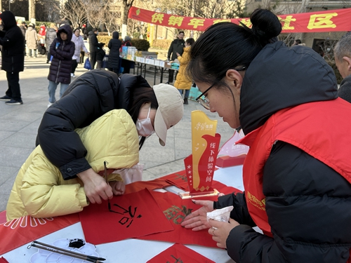 1月12日,由“学习强国”青岛平台主办,旅游学院、灵山卫街道两河社区承办的“翰墨浓香过大年”主题迎新春送春联活动在“学习强国”线下空间举办,为群众送上新春祝福。
