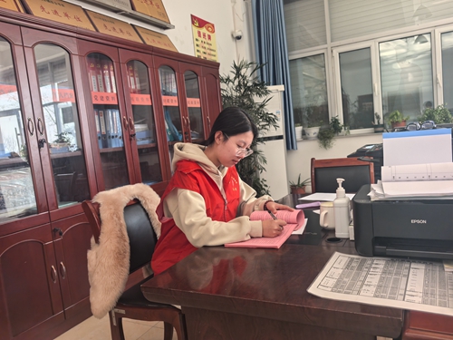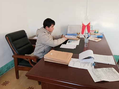 李树江在村委会整理文件档案