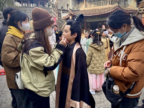 1月10日至24日,艺术学院人物形象设计专业师生赴上海胜强影视基地,参与了由中央新影中学生频道重点关注的重大少儿影视项目——传承中华优秀传统文化优秀题材少儿电视剧《戏说华夏》拍摄的妆发造型任务。