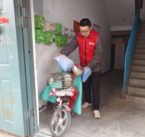 学生在肥城市新城街道东付小区党群服务中心进行志愿服务