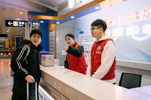 冬季学期,艺术学院学生走进基层,参与社区服务、企业实习和家乡推介。春运期间,艺术学院17名青年志愿者,在春运期间接力上岗,为旅客们提供问询指引、行李帮提、反诈宣传等志愿服务,帮助旅客顺利完成检票、安检、上车等流程,用心用情为旅客出行护航。