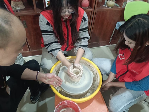 1月21日,艺术学院“青之印”传统文化调研团赴山东省泰安市肥城市博物馆开展了“返家乡”文化调研传播社会实践活动。团队成员在泰安市肥城市博物馆了解袁氏陶艺的历史渊源、制作工艺以及不同作品的文化内涵。为更深入了解陶艺制作工艺,团队走进了当地著名的袁氏陶艺制作工坊,与技艺传承人面对面交流,观摩陶艺制作的全过程并亲手体验陶艺制作。