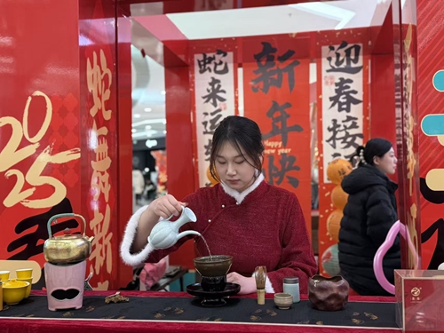 茶艺与茶文化专业学生在活动现场向群众展示调膏