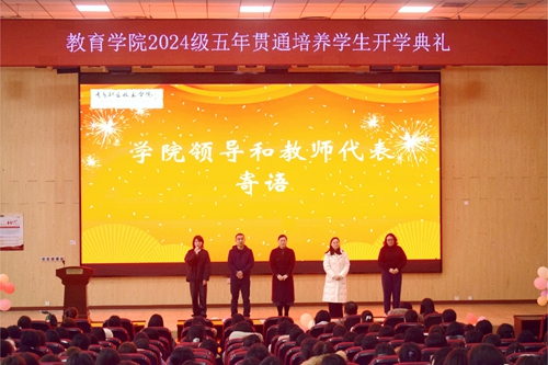 2月22日下午,教育学院在创意楼B401会议室组织举办了2024级五年贯通培养新生开学典礼。典礼上,教育学院党总支书记薛红燕详细介绍了米兰网页版概况与教育学院的专业特色、师资力量、学生工作等情况,希望新生们拥有坚韧的精神,勇敢面对挑战;培养团队意识,创造更大价值;学会知行合一,树立勤恳立学的修为典范;以德润身,提升个人综合素质。在品格塑造、素质提升与能力培养的有机融合中,争作可堪大任的时代新人。学前教育教研室教师李静从要热爱所学专业、加强自主学习、明确学习目标等方面,为学生送上了学习和生活指南。平度市职业教育中心米兰网页版班主任綦辛表示会尽自己所能,陪伴新生们茁壮成长,为他们提供学习上的指导和帮助,解答他们的疑惑;关心他们的身心健康,做他们的知心朋友,与新生们一起度过充实而美好的大学时光。在校生代表匡彦宸结合自己在校的学习、专业技能备赛和社会实践等经历,与新生们分享了心得体会。新生代表张昊韵表达了将珍惜在校学习生活的美好时光,向优秀榜样学习的决心。教育学院班子成员和教师代表对新生们进行了深情寄语与祝福。
